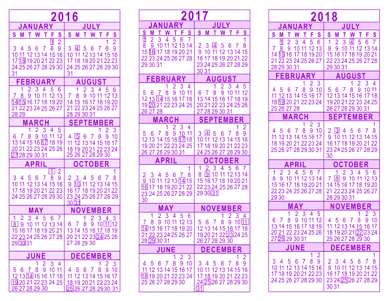 2016 2017 2018 3 Year Calendar