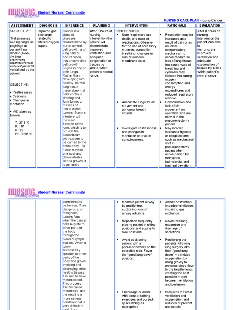 NURSINGCAREPLANLungCancerxxx 1 PDF Breathing Lung