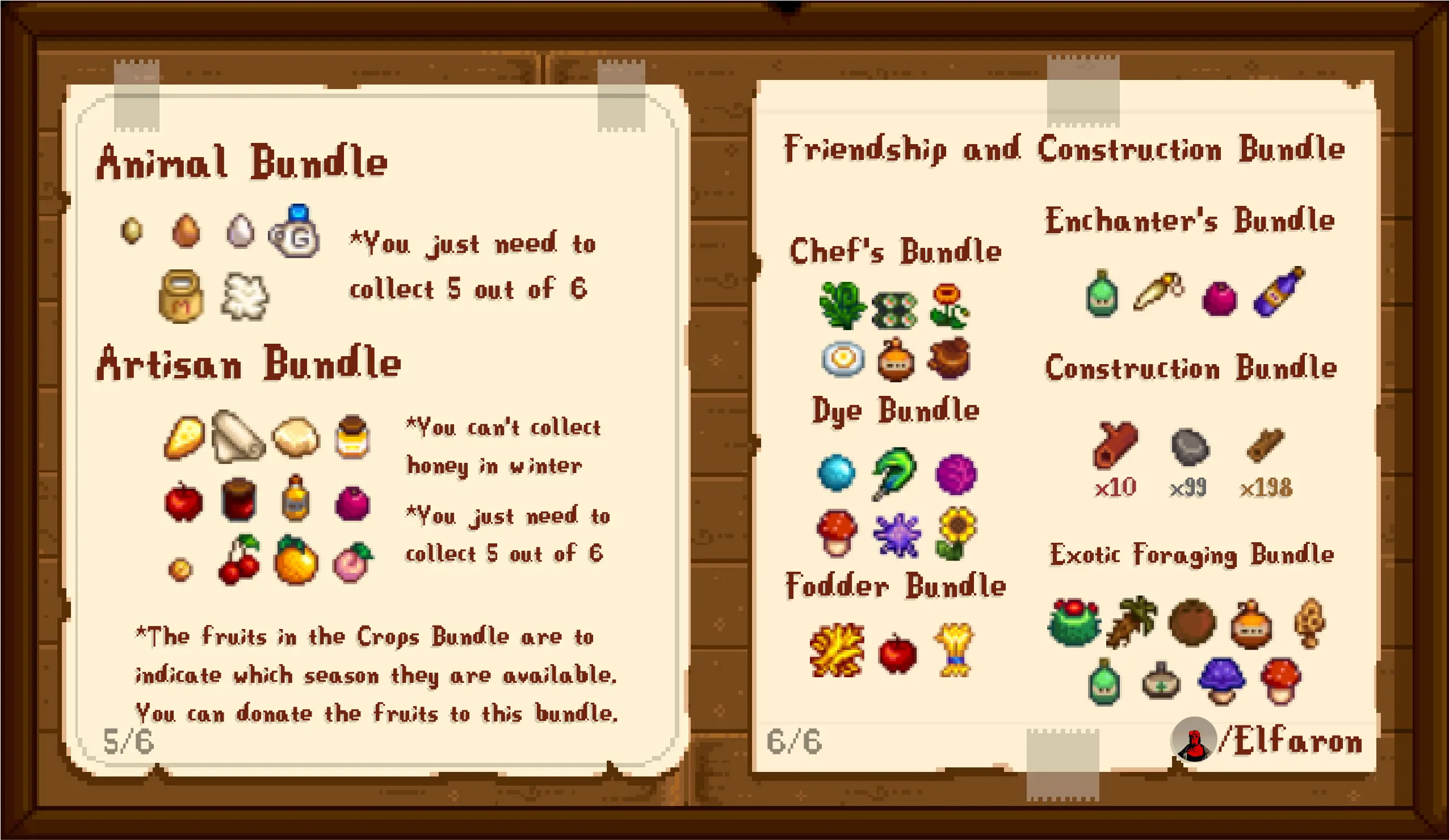 Stardew Valley Community Center Bundles