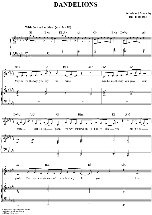 Free and easy, high quality pdf on pianotify Share, download and print free sheet music of dandelions ruth b for piano, guitar, flute and more with the world's largest community of sheet. Purchase this exclusive sheet music today and bring the enchanting tones of ruth b.'s dandelions to your next event or concert.