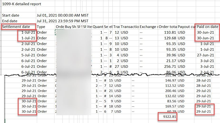 eBay 1099K Not Matching Settled Date vs Order Date