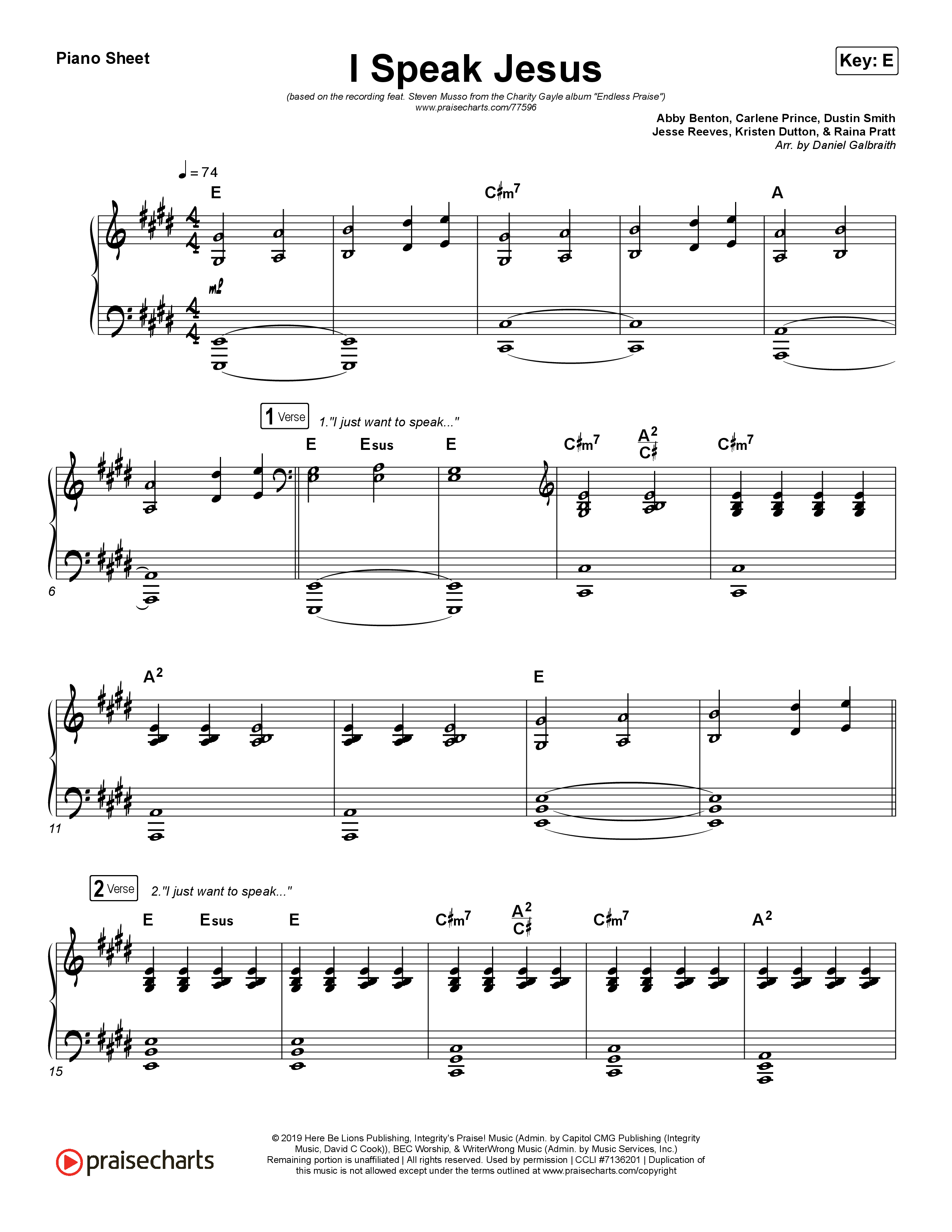 I Speak Jesus Sheet Music PDF (Charity Gayle / Steven Musso) PraiseCharts