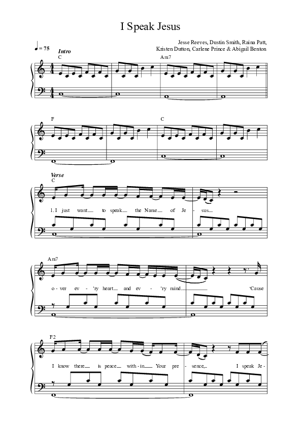 I Speak Jesus by Jesse Reeves 4Part Digital Sheet Music Sheet