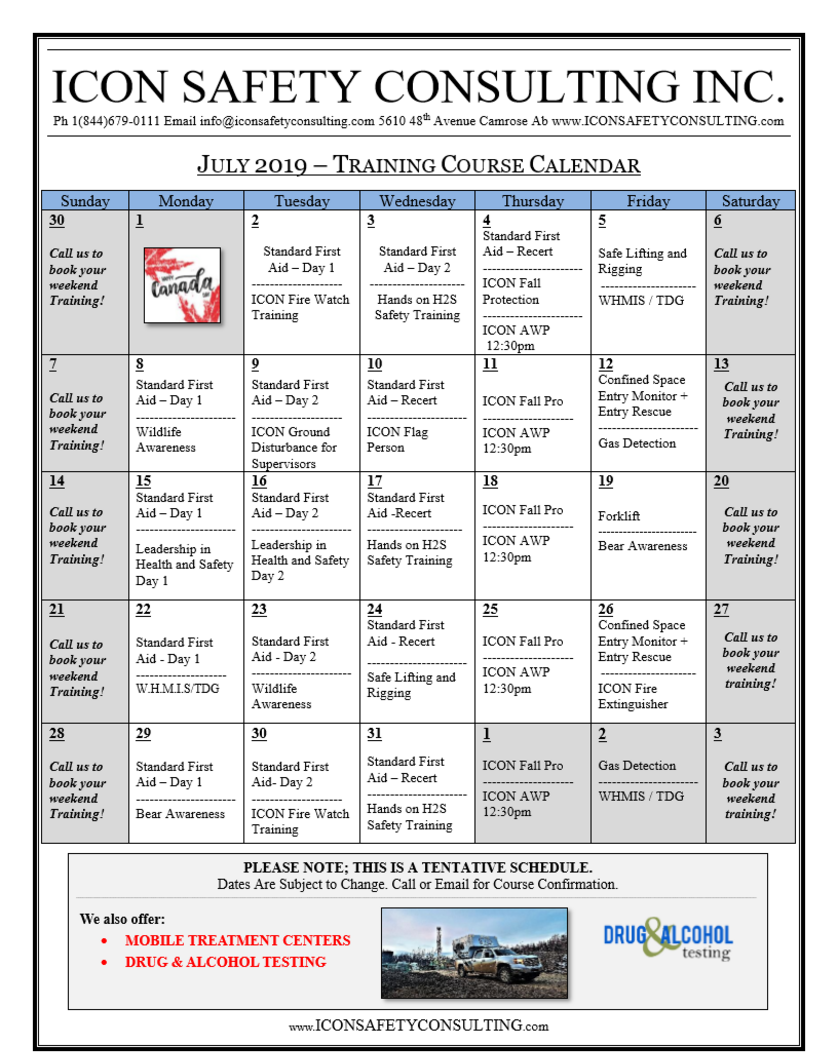 Monthly Safety Training Calendar ICON SAFETY CONSULTING INC.®