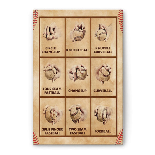 Baseball Poster & Canvas, Pitching Grips Cheat Sheet Wall Art, Home De